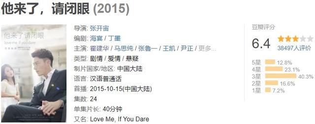 更令人唏嘘的是,2015年霍建华曾经与马思纯合作过电视剧《他来了,请闭眼》,那时候马思纯是二番,四年后二人地位颠倒。