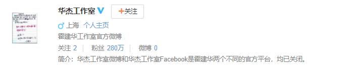 搜素霍建华关联用户里的华杰工作室,标着“霍建华工作室官方微博”,却明明白白写着已关闭。