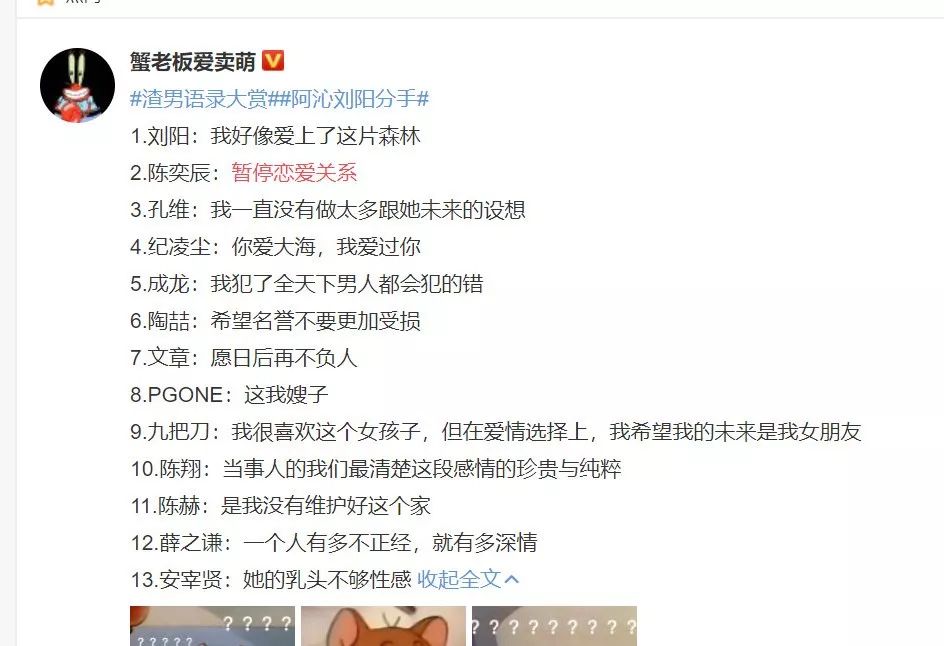 原标题:娱乐圈渣男文艺分手,没读过几本书都不好意思出轨