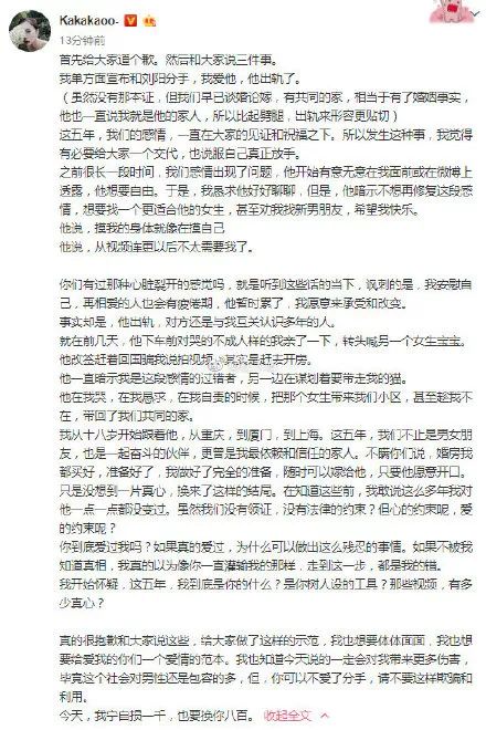 然后就到了今天,男方发微博宣布分手,哦,不对,是暂停恋人关系,但如果有机会,还是愿意陪伴着她一起修复心灵所受到的伤害的!