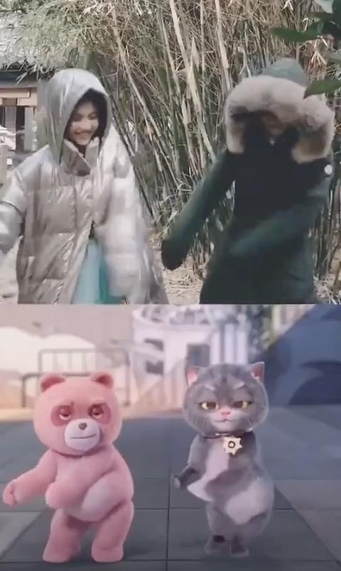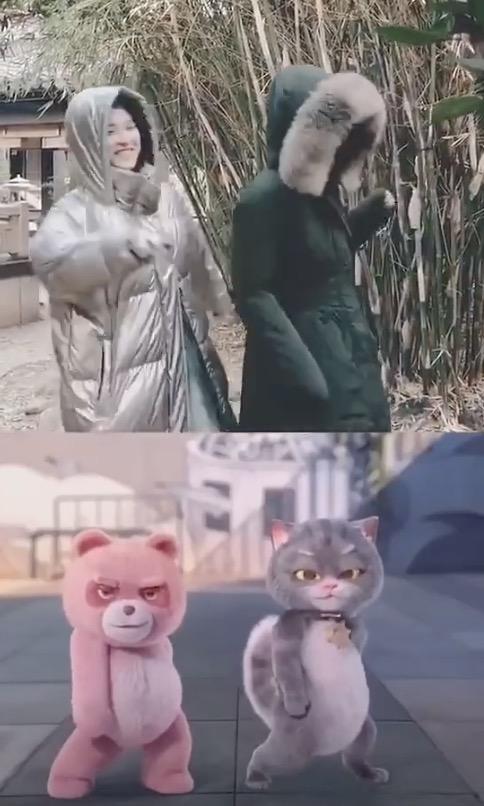 原标题:赵丽颖跳抖肩舞,与张慧雯动作同步,穿羽绒服模样笨重,憨厚
