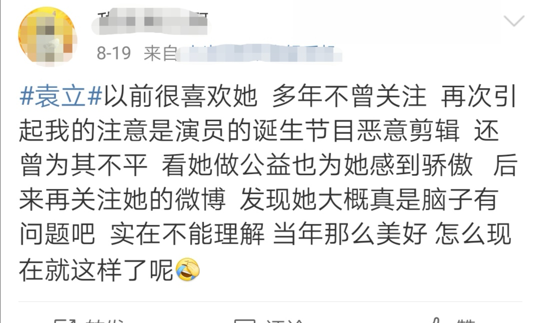 更有网友表示,袁立喜欢用别的事情来混淆视听,“她说的话一个标点符号也不能信”。