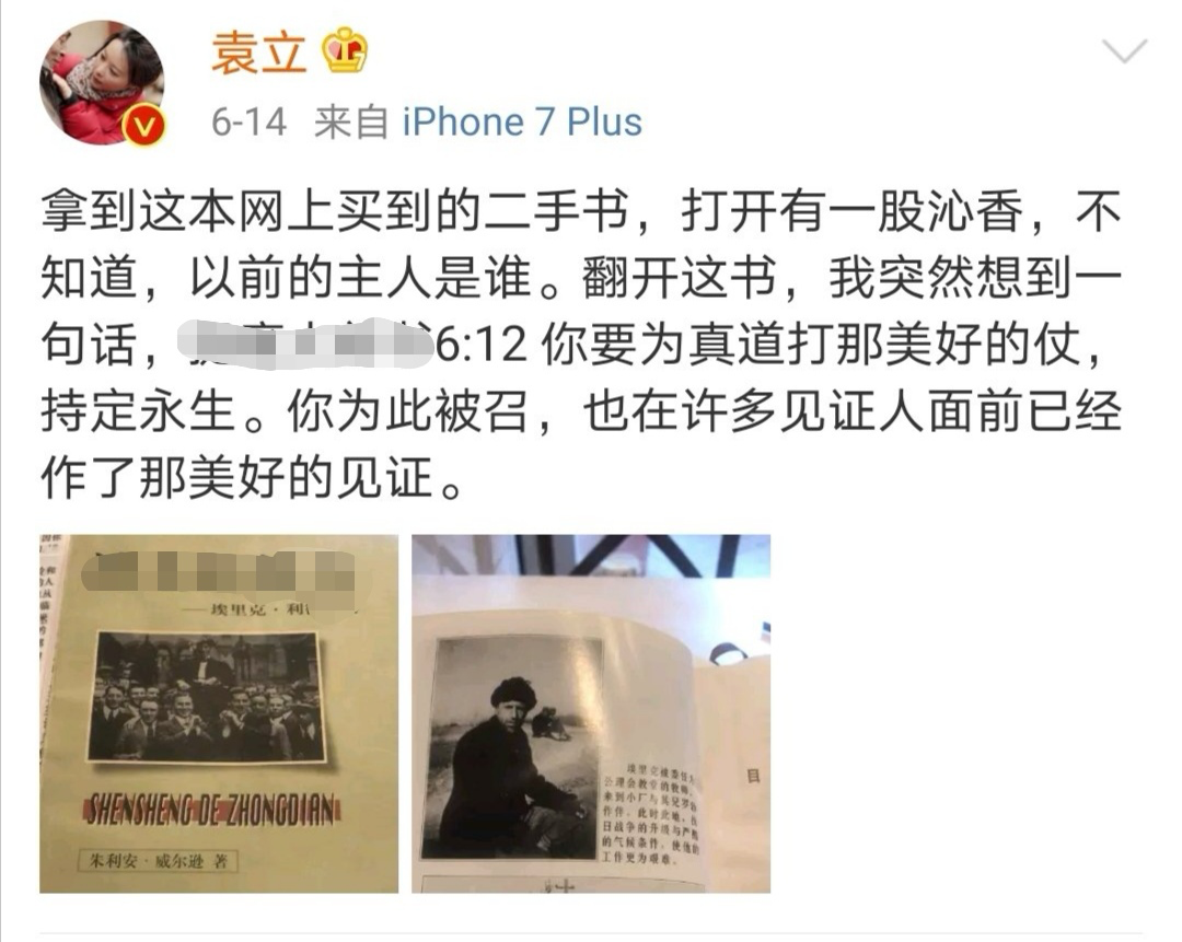 袁立表示某社交平台工作人员给她打电话,让她学习某篇文章,并且不要将自媒体当成宣扬其他思想的场所。