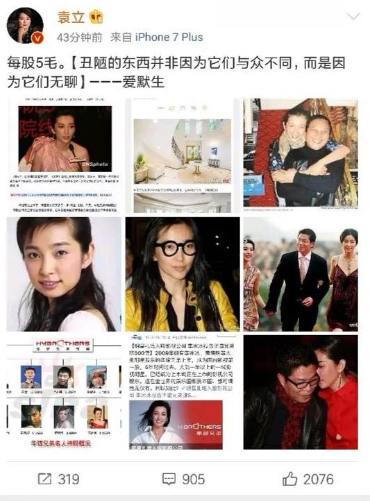 在2018年李冰冰彭于晏的“座位之争”中,袁立就曾公开站队彭于晏,并连续在社交媒体用内涵、发丑照等方式攻击另一位当事人。