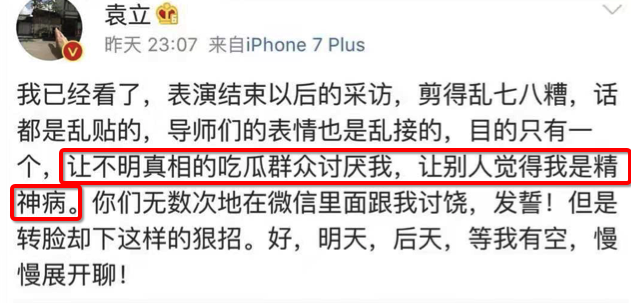 从袁立的字里行间不难看出,这一次她是被“有关工作人员”给“教育”了,这通“电话教育”就很有可能是这次洗手间哭泣的导火索。