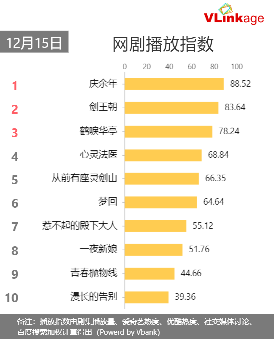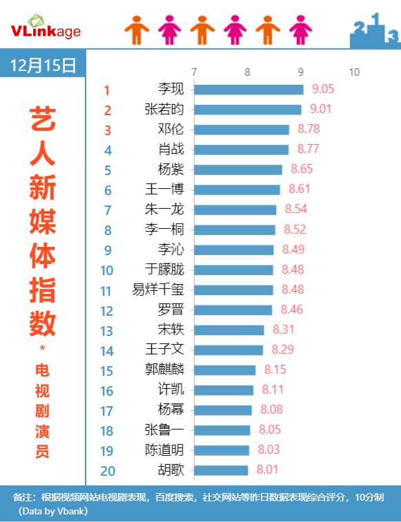 原标题:Vlinkage榜单 | 12月15日网播数据及艺人新媒体