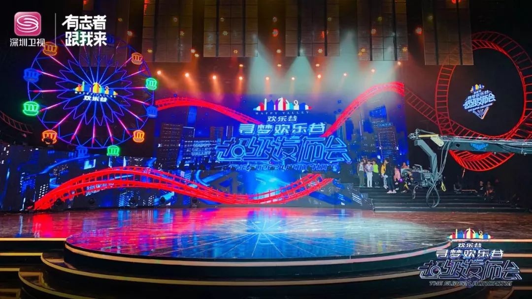 本次《寻梦欢乐谷-超级发布会》的舞美效果依然延续深圳卫视每一场《超级发布会》的高水准舞美设计,采用透明 “黑科技”冰屏,融入幻彩摩天轮与蜿蜒起伏的过山车,献上震撼无比的视觉盛宴,通过大型特效、裸眼3D大屏打造令观众耳目一新的沉浸式舞台效果。精妙的布景切换,在光影交错间,足以让所有观众身临其境,瞬间进入欢乐谷的奇幻世界。