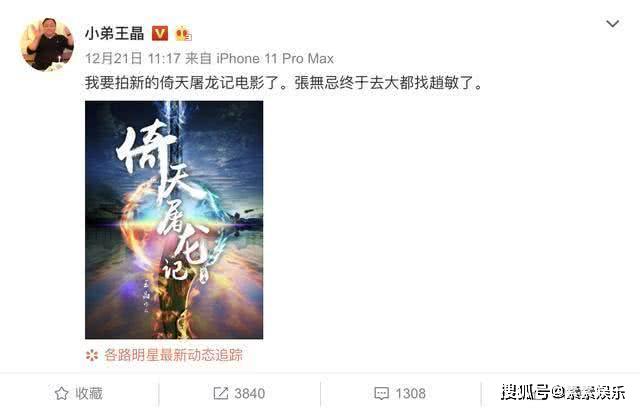 12月21日大导演王晶在自己的媒体账号上面声称要开拍一部新的倚天屠龙记电影,并且声称张无忌终于去大都找赵敏了。
