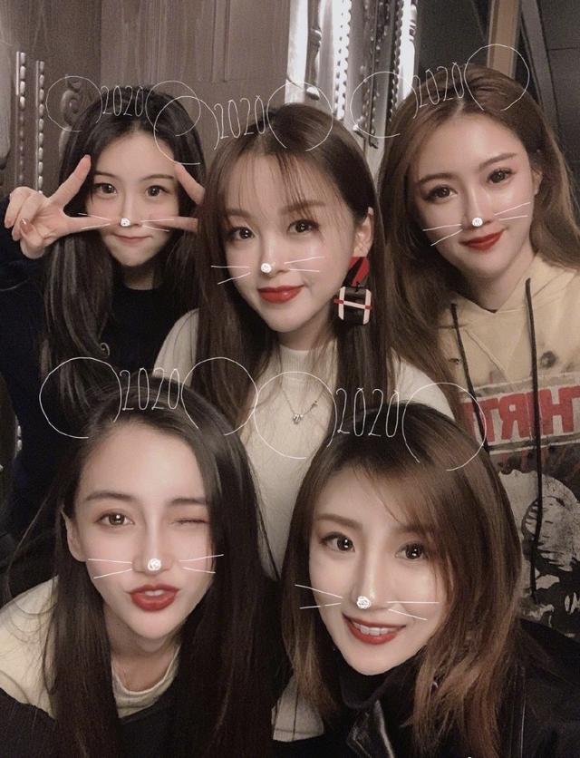 baby还分享了一张与闺蜜们的合影,同样都用了美颜,还属baby最好看,也相当有辨识度,与网红脸大不同!