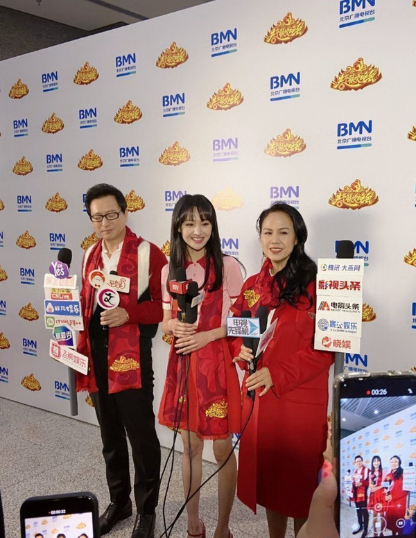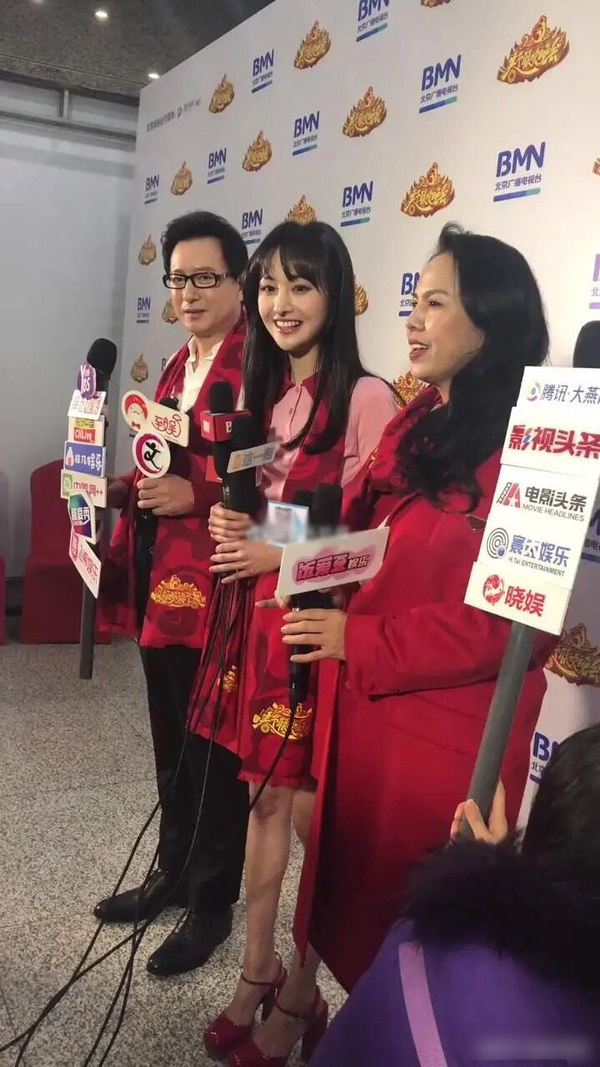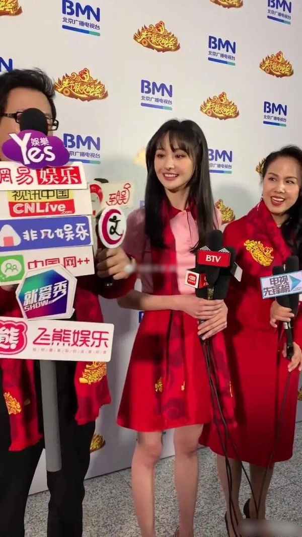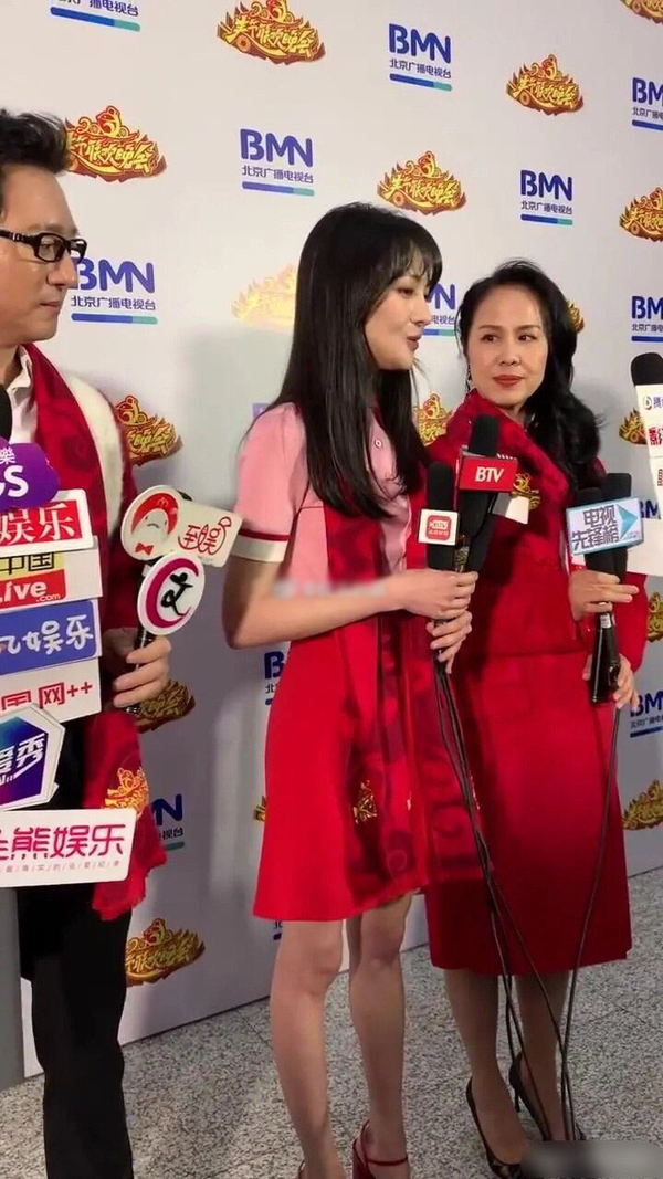 三人当天同穿大红色喜庆十足,郑爽是一袭红裙,露出了纤细的四肢和高挑的身形,裙子除了大红色,还有粉色,二者搭配起来优雅高级又不失甜美小女人味。发型依旧是黑长直发配空气刘海,清纯甜美的模样依旧像刚出道时候。