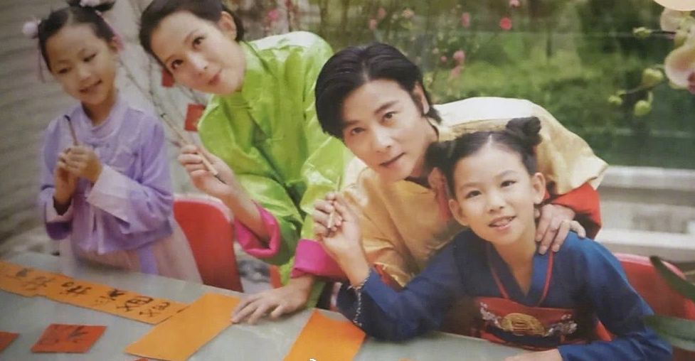 当天蔡少芬穿着翠绿色的唐装,扎着哪吒丸子头,看起来年轻了二十岁。张晋穿着嫩黄色的唐装,发型和平日一样虽朴素但有型。两个女儿也已经亭亭玉立,大女儿长相随妈妈,小女儿脸型像爸爸五官像妈妈,各具特色。