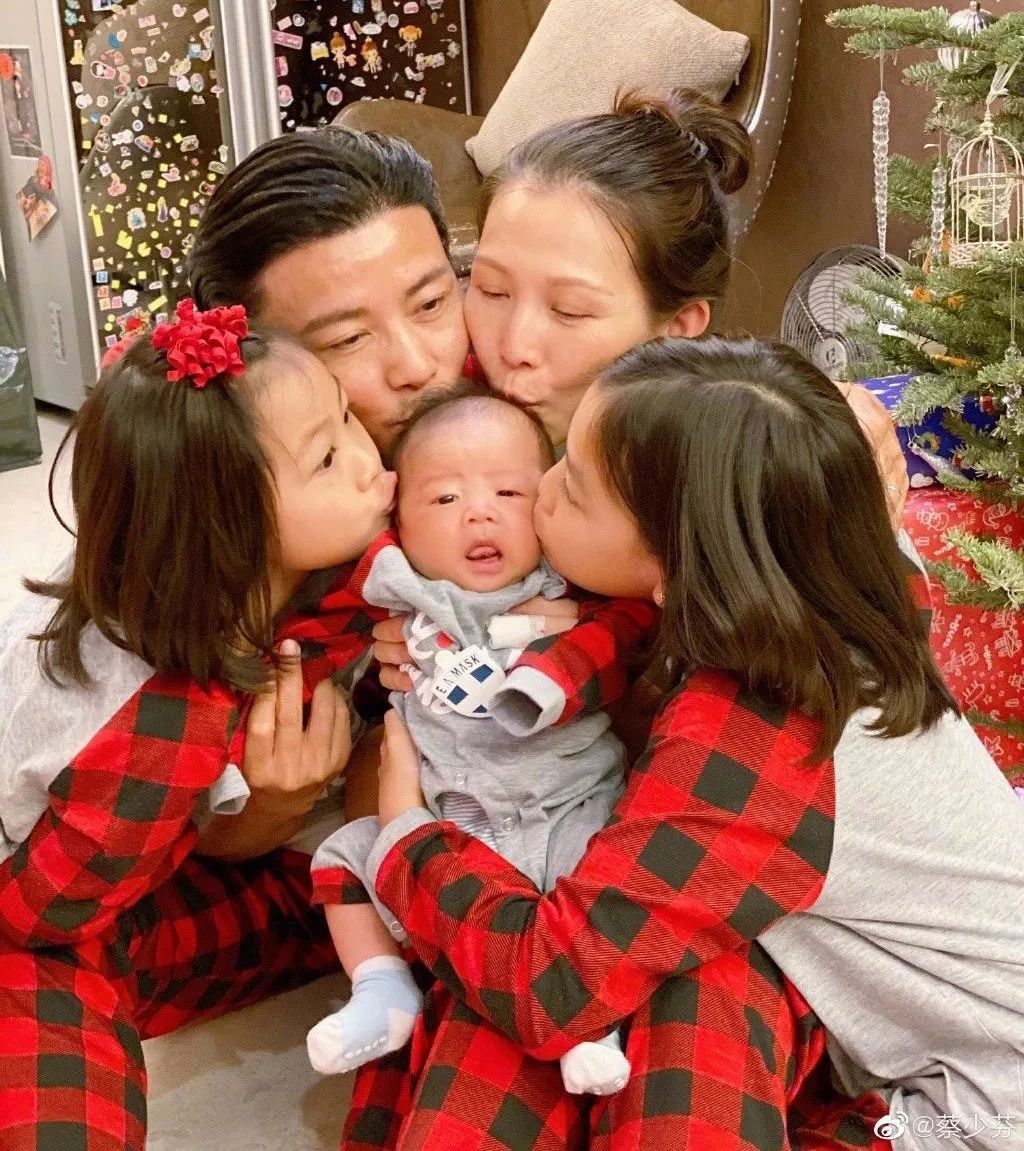原标题:蔡少芬一家五口全家福,三胎儿子乳名首曝光,五官长相神似