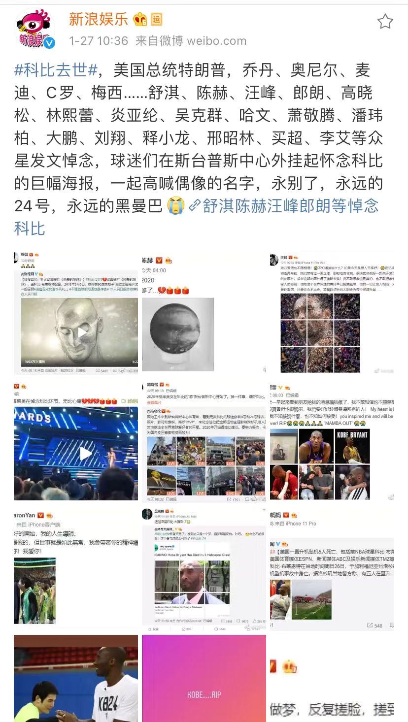 除以上名人明星的悼念之外,还有很多人纷纷发文表示深切的悼念,看来科比真的是一代人的偶像和精神榜样。