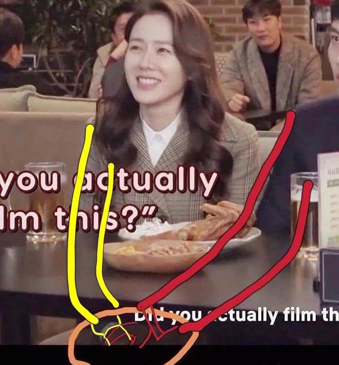 还有显微镜网友发现,桌子下面玄彬的手牵着孙仙(真假自辨)。不禁让我想到了《经常请吃饭的姐姐》里孙艺珍和丁海寅的桌下牵手,kswl!