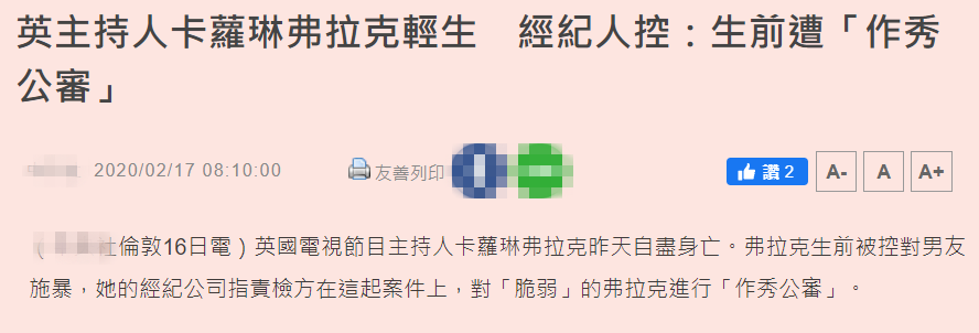 虽然卡洛琳弗拉克和男友刘易斯伯顿极力否认此事,但仍遭到英国皇家检察署公诉,并以涉嫌故意伤害罪名为由对卡洛琳弗拉克进行起诉,并且,英国检方上个月还曾告诉法院,要求卡洛琳弗拉克在3月时出庭受审。