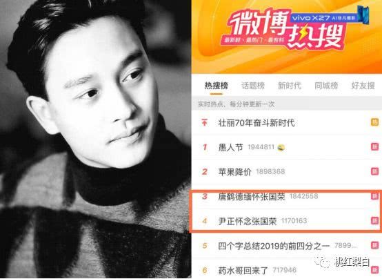 记得去年的4月1日,#唐鹤德缅怀张国荣##尹正怀念张国荣#话题,被网友自发顶到热搜榜前五名。