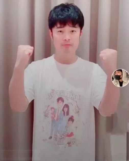 陈赫穿的短袖上印了一家四口的头像,似乎暗示着妻子张子萱生了二胎。