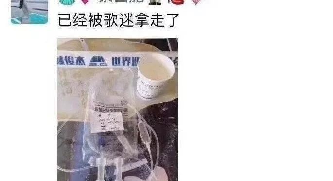 结果很快吊针被歌迷拿走了,我不知道发朋友圈的人是怎么想的,也不知道拿走针头的歌迷是怎么想的,这算是“医疗垃圾”了吧????
