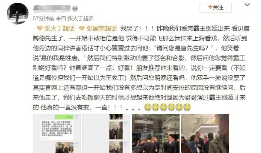 有网友在观看《霸王别姬》的时候偶遇了张国荣先生生前的伴侣唐鹤德,唐鹤德不仅应了粉丝要求合影签名,还大声的说电影好看。