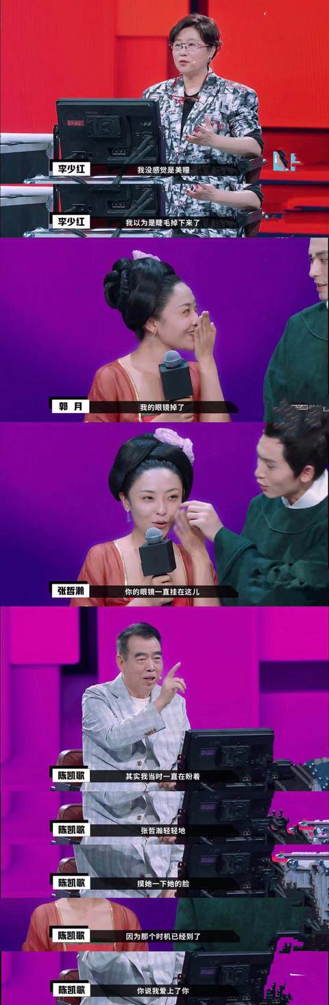 之后,李少红评价郭月演得很投入,因为美瞳都哭出来了,而郭月自己都不曾发现。此时郭敬明提出了质疑:你近视多少度?郭月说370,郭月还说自己从刚才到现在一直都没发现美瞳掉出来了。讲真,小编觉得郭月演技的高光时刻就在此时了。370度的近视,美瞳掉了一只,居然感觉不到视物有障碍?难道是郭月的眼睛构造与小编的不一样?