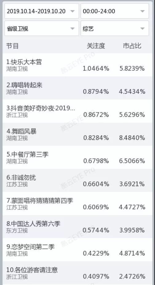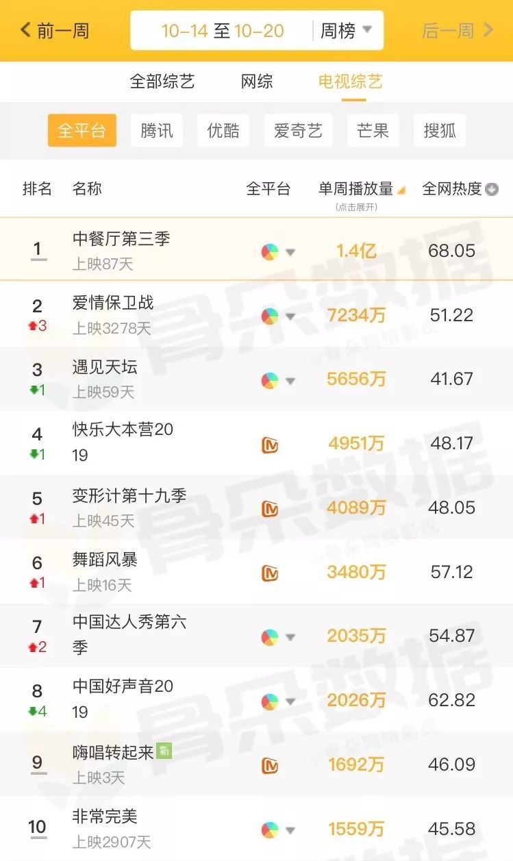 仅就上周而言,综艺节目整体表现不错,且部分节目收视成绩表现比较亮眼。此外,各家平台开始更加注重周日档的排兵布阵,上周日有多档CSM59城收视率破1的精品节目诞生。