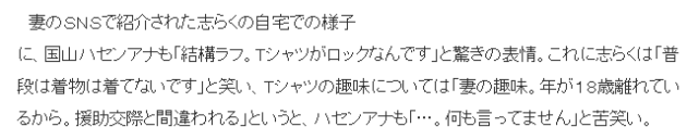 虽然家庭很是幸福美满,但和妻子酒井莉加18岁的年龄差仍旧给立川志乐带来了很多困扰。近日立川志乐在节目中提到,酒井莉加长着一张可爱清纯的脸看起来比实际年龄要小,而自己生活的很粗糙在服装打扮上也偏向于成熟风格,所以两人外出时经常被认作是父女。但由于举止亲密,又被很多人认为自己是在包养妻子酒井莉加,让立川志乐有些哭笑不得。