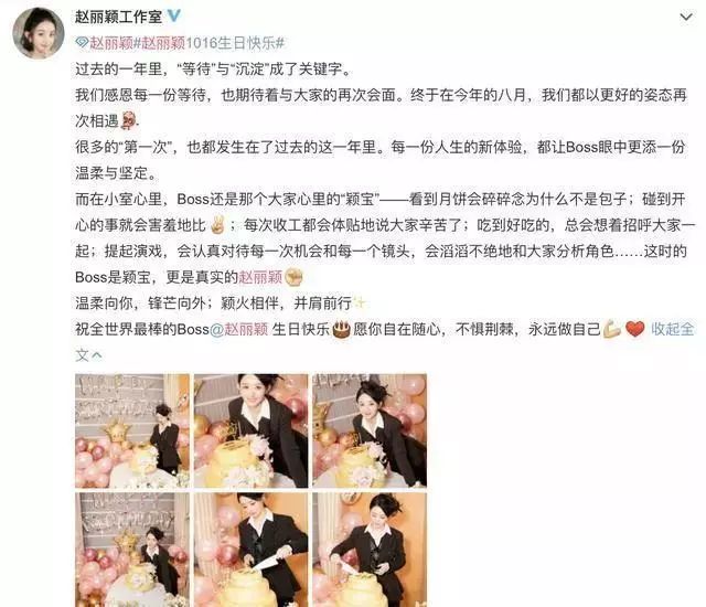 相比于粉丝们的简单四字祝福,赵丽颖工作室的深夜表白更让人感动,小室掐着点晒出一组为颖宝庆生的照片,并暖心告白,这段文案可以说是写得相当用心,给粉丝们分享了她的五个小日常:看到月饼就会碎碎念、一开心就会害羞比V、收工时的体贴问候、十足的吃货一枚、对于演戏永远敬业……