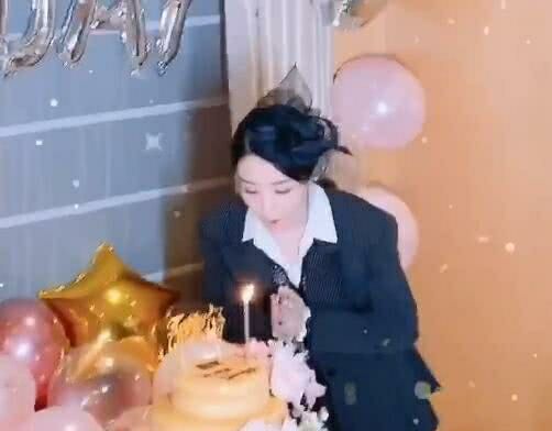 画面中可以看到生日会现场布置得十分温馨,被气球和鲜花笼罩着显得格外梦幻,赵丽颖身穿一套黑色休闲西装,头戴黑色头纱,成熟女人的韵味尽显,以前那个俏皮可爱的颖宝,在有了宝宝之后,已经晋升为时尚辣妈一枚。
