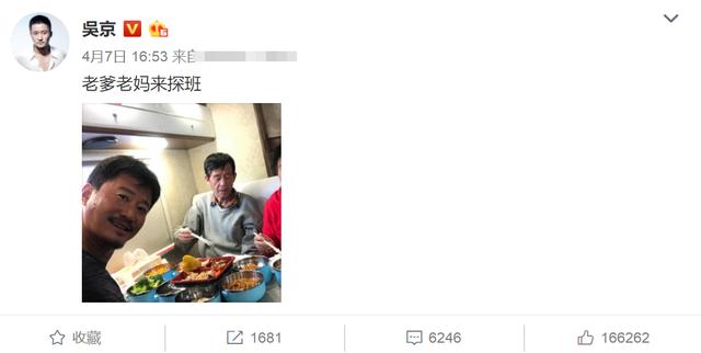 吴京付出多少?看过电影的观众,都能感受到。从一件小事也能看出来。4月7日,吴京在拍摄《攀登者》,他的老爹老妈带着老家的饭菜去片场看吴京。原因就是吴京因拍戏已经好几个月都没有回家了。老爹老妈担心他的腿病,所以才不远千里去看他。这正是硬汉吴京的风格,这也是很多观众喜欢他的原因。不过,这个微博当时却引发了一些人质疑,一些网友骂吴京拿父母炒作。