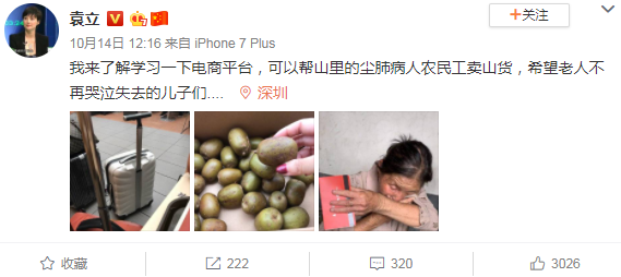 原标题:袁立想开网店帮助尘肺病家庭卖山货,却遭某些网友吐槽继
