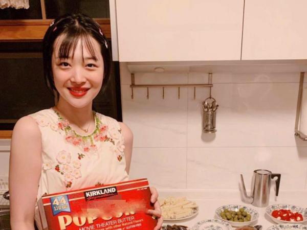 今年7月,雪莉邀请朋友在家中举办派对,派对上雪莉穿着米色花朵纱裙,笑容甜美。