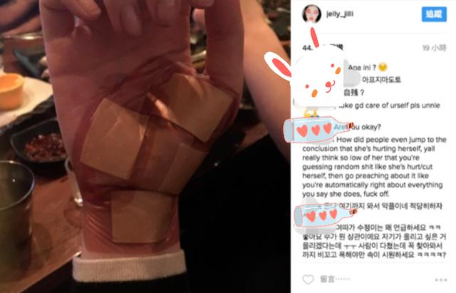 此外,还有很多网友发现雪莉自杀的不少征兆。早在两年前,雪莉就曾疑似有严重的自残举动,也有网友怀疑那是自杀未遂。她本人曾经在ins上发布过自己手部缠满纱布的照片,从手掌右上部分一直到手腕动脉处都是伤口。在当时,有关雪莉自残的传闻便已疯狂传播,但那时候经纪公司做出的声明是“雪莉是自己不小心受伤”。