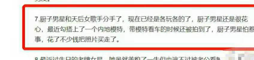 网上一直有消息称锋菲恋分手了,更多的都是捕风追影,两人这么多年感情一直很稳定。不过王菲已经50岁,至今和谢霆锋两人还是情侣关系不领证确实让大家怀疑。近日就有知名大V爆料称:厨子男星和天后女歌手两人分手了,还称男明星对感情不专一。这两天线索很明显的指向是谢霆锋和王菲这一对姐弟恋了,就是不知道真假了。