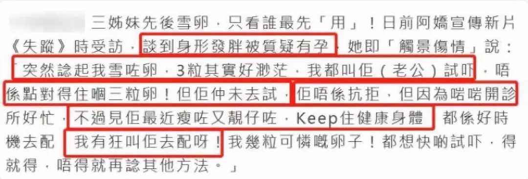 为此,阿娇自己也表示对那三颗冻卵感到非常抱歉。