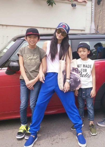 张柏芝出国旅游身边也会带着一个菲佣,从照片来看,只有张柏芝的二儿子张豪龙和三胎儿子张礼承两个小儿子在场,不见大儿子谢振轩。