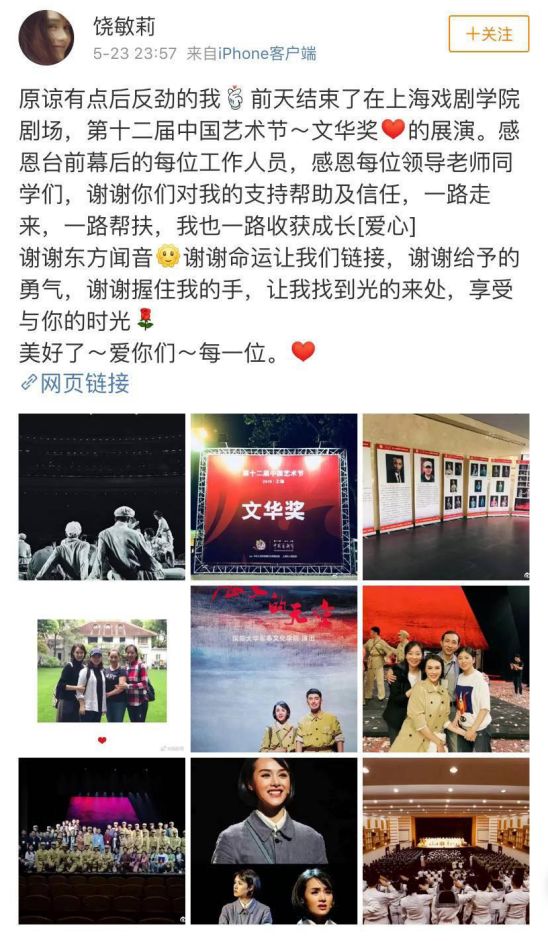 如今饶敏莉已经慢慢将重心放在了演话剧上,她多次出演话剧,也受到了观众们的一致好评,不得不说,这样的女生实在是太优秀了!
