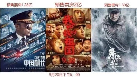 9月30日,三大重磅主旋律电影《我和我的祖国》、《攀登者》、《中国机长》同步上映。早上8:00,《攀登者》率先打响上映第一枪,紧接着9:00,《我和我的祖国》、《中国机长》联袂登场。