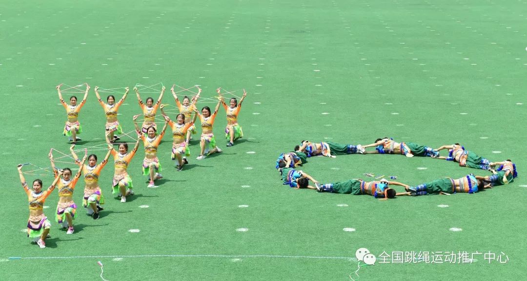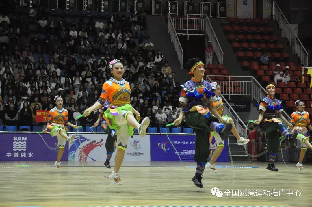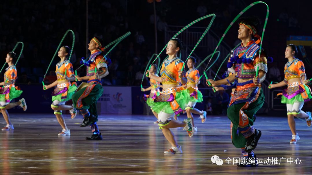 音乐与绳子在地上协奏击打出清脆的声响,跳跃、穿梭、翻腾……眼花缭乱的技巧,矫健如燕的身姿,生机勃勃的活力。跳绳健儿们将民族服饰、生活习俗与艺术表演结合在一起,充分展示了各民族的独有风情和文化魅力,精彩的表演燃爆全场,弘扬了新时代体育精神,唱响各民族共同团结奋斗、共同助力跳绳运动发展的好声音。