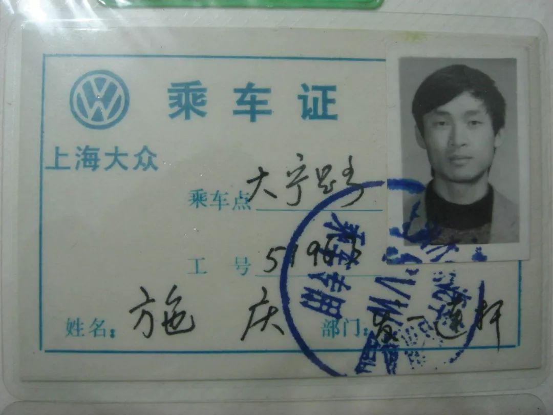 还有人将第一辆汽车视作生活和时代的一个转折点。@施庆珍藏着一张1988年的乘车证。他是上汽大众的老员工,那时所有的员工只能乘坐班车上下班。夏天,来上中班的员工常被堵在正在修路的曹安公路上。太阳烘烤着整个车厢,闷热得让人叫苦不迭。「如果我们将来都有自己的私家车该多好。」有人打趣。