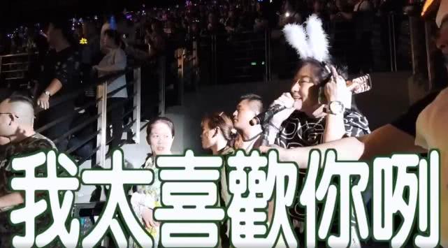 但是在演唱会和观众互动的环节却出现了一件有趣的事情,这位头戴兔子耳朵的哈尔滨美女当场就对任贤齐示爱了。
