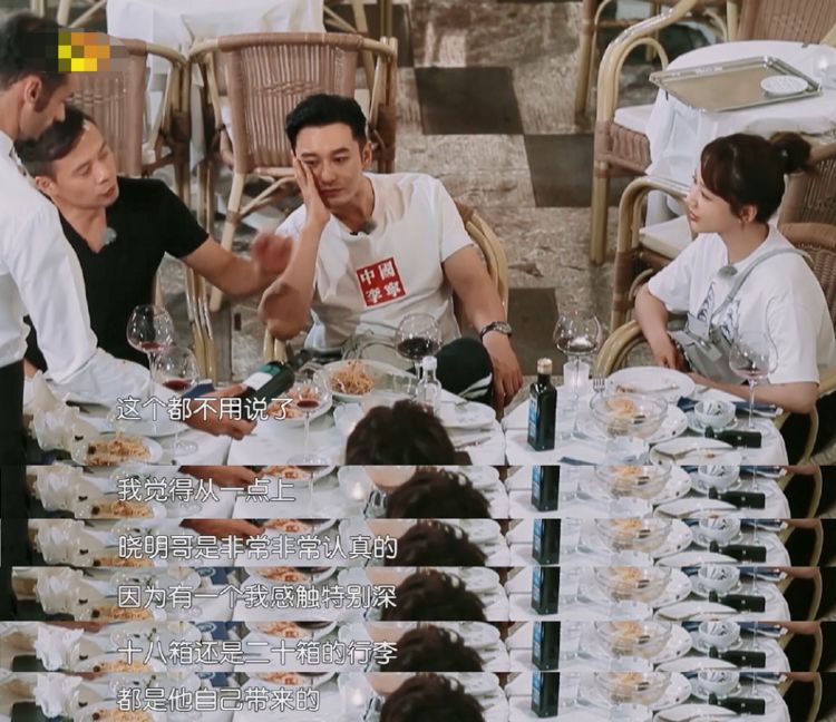但黄晓明同样是没有明星包袱的一位。他在成为店长之后,是在认真地经营中餐厅,为了把中餐厅做好。林大厨透露,自己在录节目前准备三箱行李,准备了三天,但黄晓明他在录节目之前,就自己挑选调料、酱、煎饼打包了将近20箱的东西。挑选、购买、打包要用多长时间?除了黄晓明,还有哪个明星能在一档真人秀综艺节目录制前的准备工作做到如此程度?毕竟这些事情是没钱拿的。