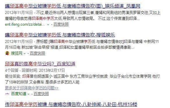 那么邱泽的学历又怎么样呢?此前网上一直传他和唐嫣恋爱时也不被唐嫣家人看好,原因就是他只有高中学历,实在拿不出手。