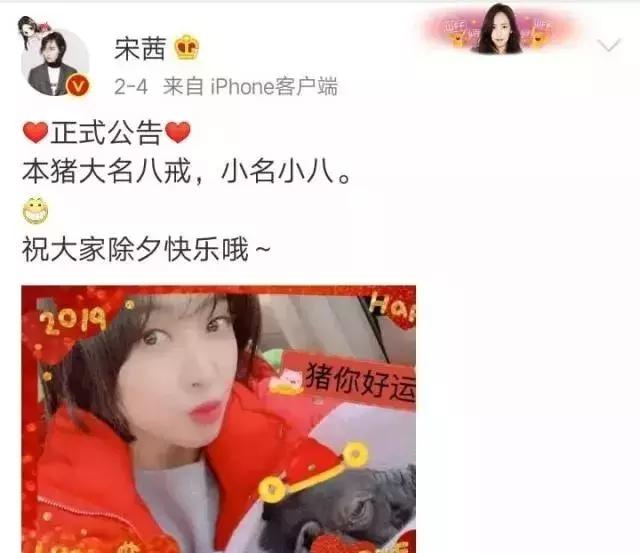 而宋茜也是养猪界的一员,在生日得到工作人员送的迷你猪礼物后,宋茜不仅贴心的给他取名小八,经常会在微博上晒出自己和小猪的合影。