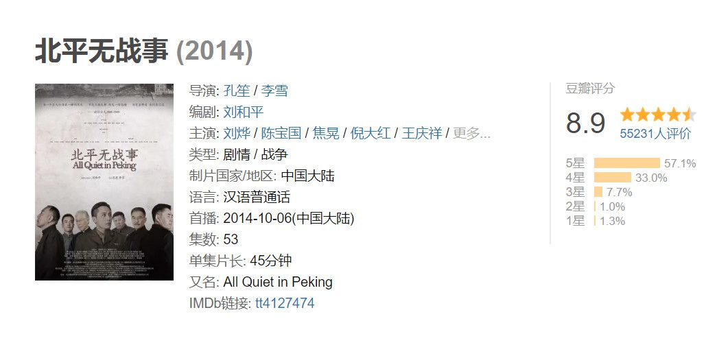 原标题:最强抗战剧《北平无战事》!8.9分集结二十位老戏骨,导演更