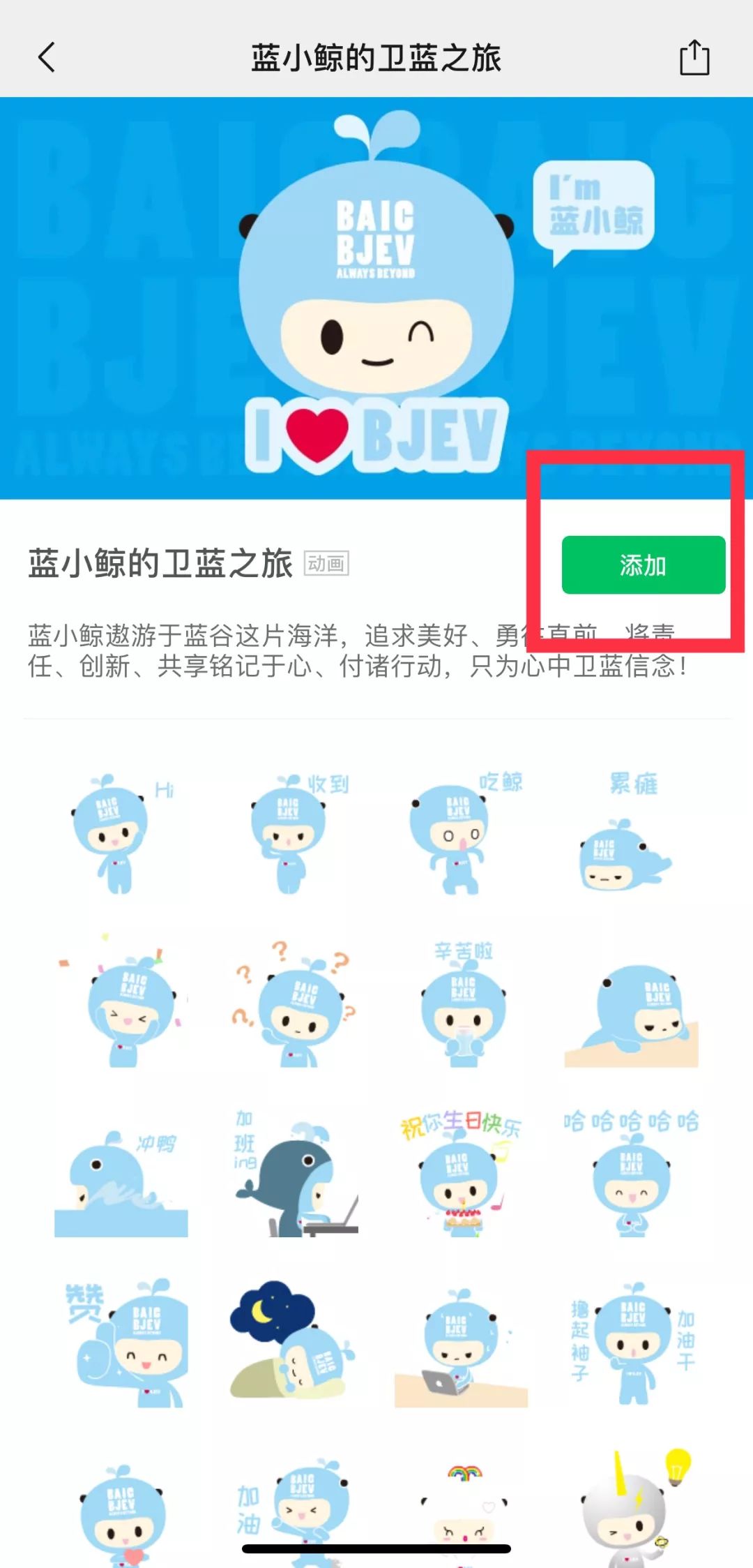 由北汽新能源党委宣传部设计的“蓝小鲸的卫蓝之旅”表情包,正式在微信表情商城上线啦!