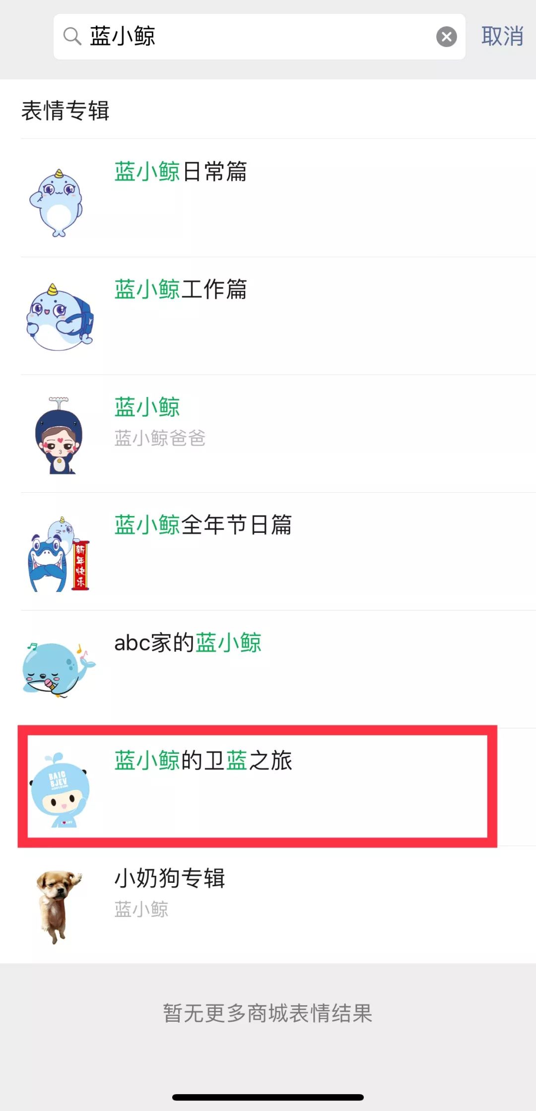 PS:进入微信表情官方商城,搜索“蓝小鲸的卫蓝之旅”,点击下载,也可以获得表情包。请大家一定要多多下载,以便我们在“蓝小鲸”相关表情中的排名更加靠前哦!