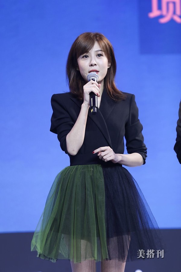 当日同台的“美嘉”李金铭的装扮要显得成熟许多。她身穿黑色垫肩西装连体衣,腰部下面搭了绿色+黑色的纱裙,帅气不失甜美,露出一双笔直的修长美腿超吸睛。脚上穿着系带款黑色高跟鞋少女心十足,简单的棕色齐肩发更显得知性和大气。