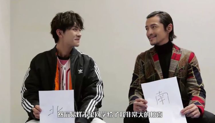 之后在推荐电影阶段,胡歌推荐了《少年的你》,称赞电影中两个演员都演得非常好。而此前胡歌就曾和易烊千玺合影,两人一人拿一张纸,一南一北,不仅代表了两人家乡的位置,也突出了各自电影中的地点元素。易烊千玺饰演的人物叫“小北”,胡歌电影则是“南方车站”。