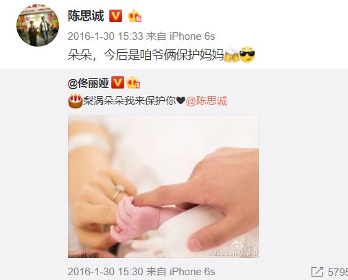 相恋两年后,两人顺理成章的共同步入了婚姻的殿堂。不久后,佟丽娅于产下一男孩,命名为朵朵。
