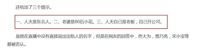 爆料者还在直播中给出三个提示,网友缩小范围到贾乃亮、佟大为身上,但都被否认了。而当网友纷纷质疑是陈思诚时,主播没有否认,即被网友认为是默认。自此,陈思诚疑似出轨记录上再添一条。
